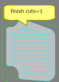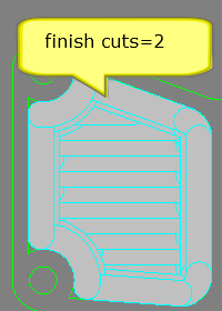Set in number of finishing cuts and the removal value for each finishing cut on the outside walls of the pocket and on the walls of the islands.
