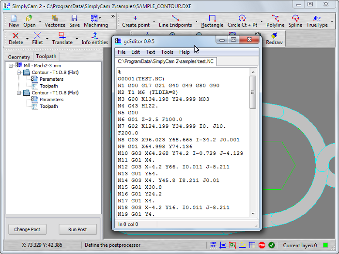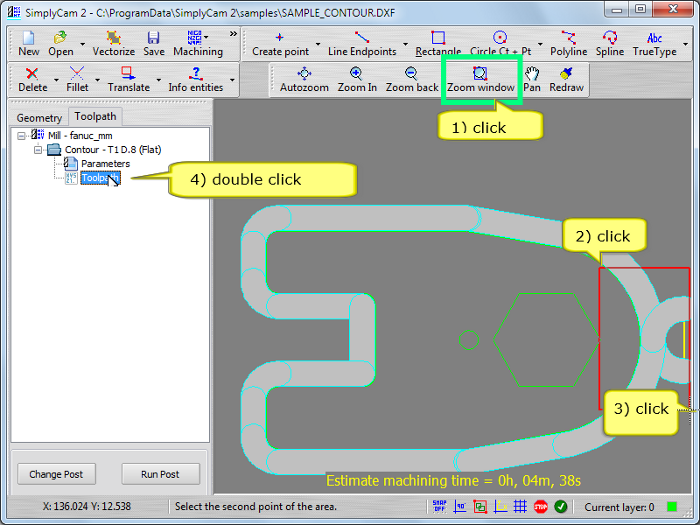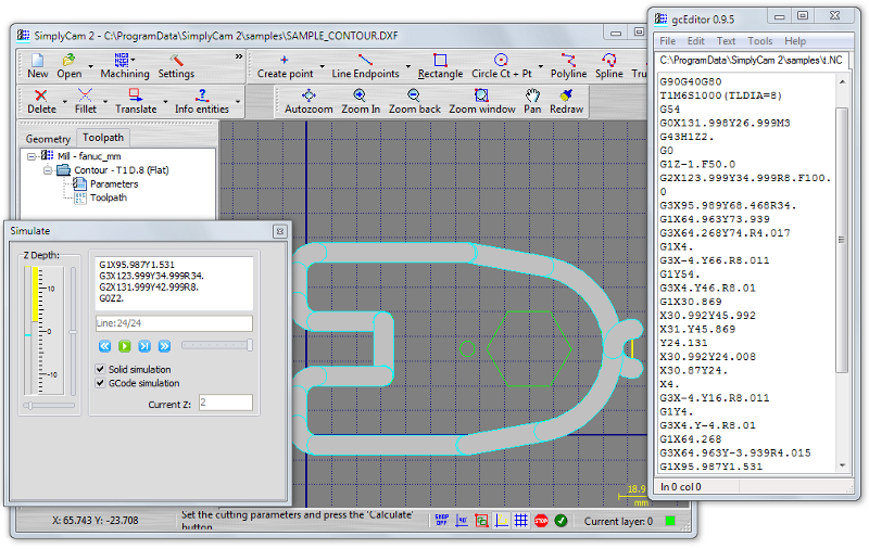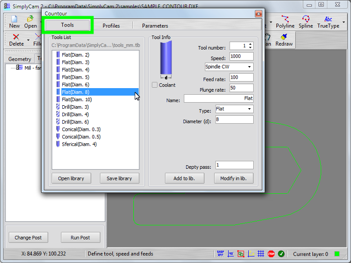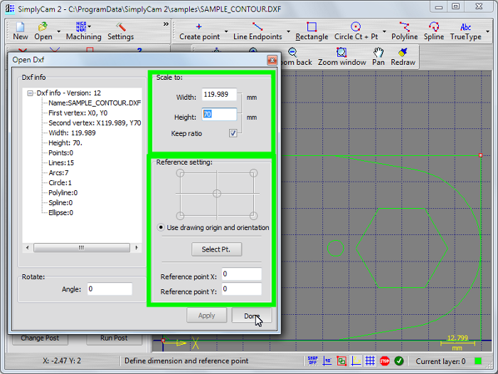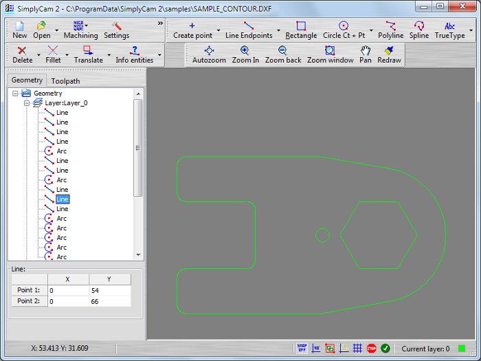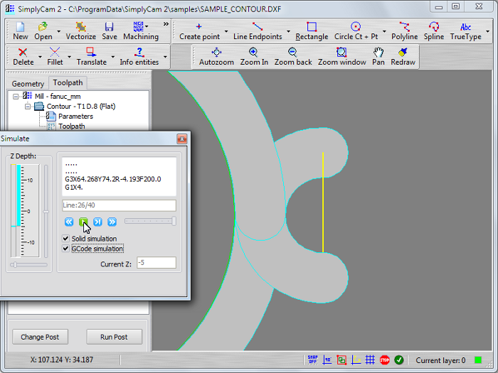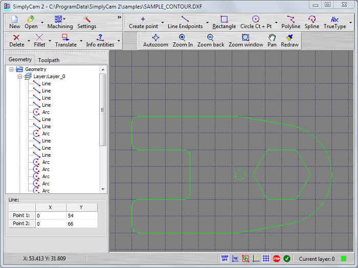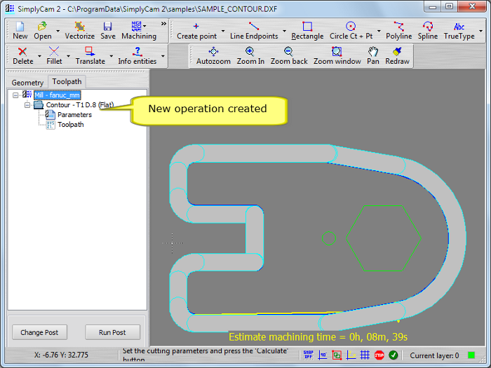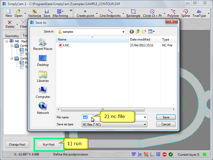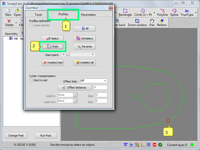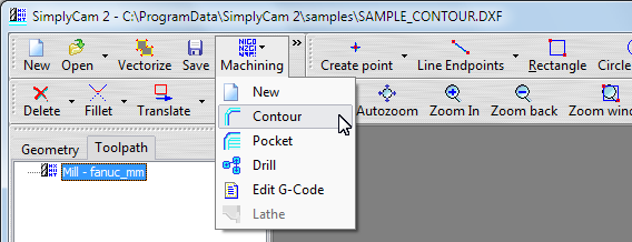 Select in "..\SimplyCam 2\Samples\" folder the SAMPLE_CONTOUR.DXF file.