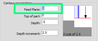 Feed plane: set the height that the tool rapids to (G0) before changing to the feed rate (G1) to enter in the part (absolute).
