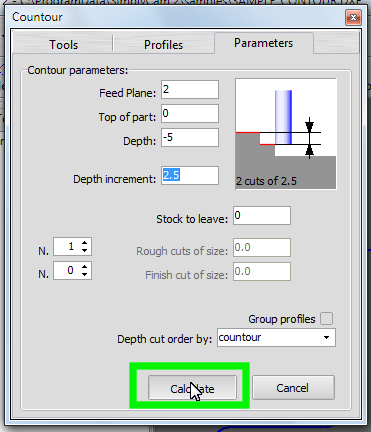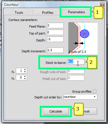 Stock to leave: set the amount of material to leave on profile; example if you need a finish pass with other tool.