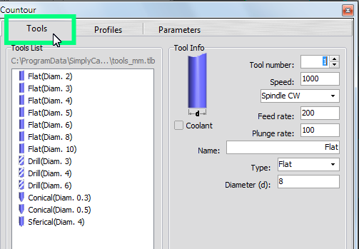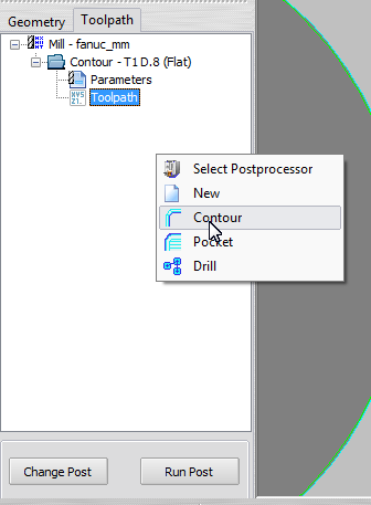 Press "Contour" in "Machining" menu to go in toolpath section.