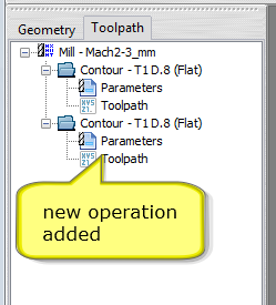 The new operation "Contour" is created in the Operation Manager and the toolpath is diplayed in the graphic area.