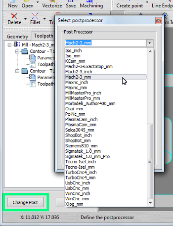 Select postprocessor of your Cnc machine.